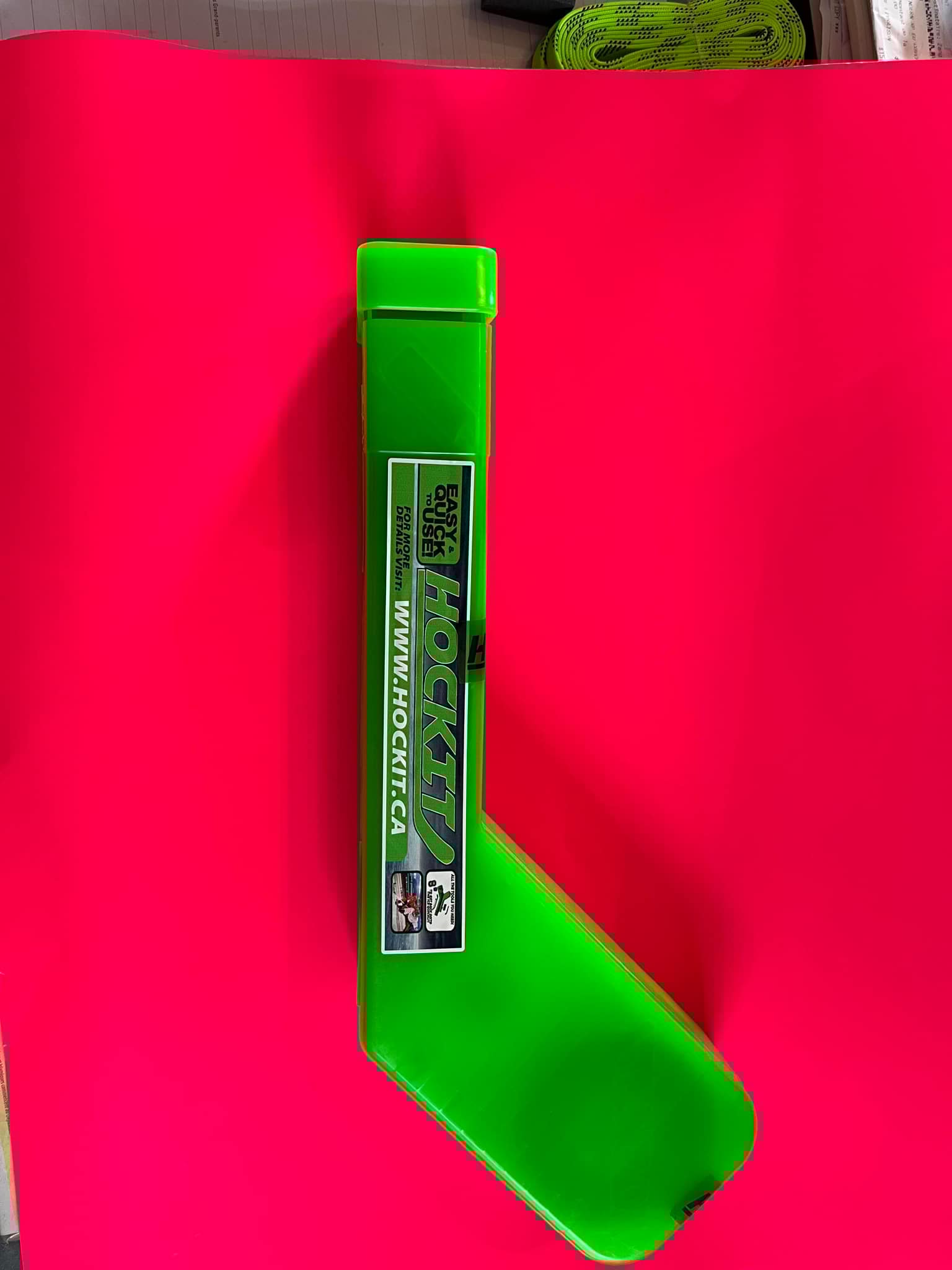 Its used to cut the handle of a hockey stick to its proper length with the included mini-hacksaw, by inserting the handle of the hockey stick in the built in miter box design in the hockit toolbox handle. Also included in the Hockit Toolbox is, hockey wax, hockey tape and grip tape, as well as a marker to number the stick with the player’s number on the handle, for fast paste stick identification during the games.
